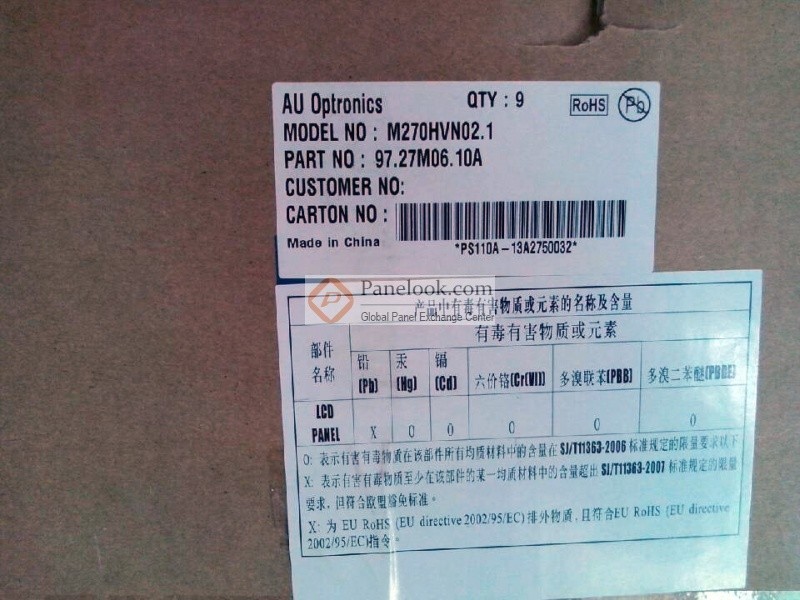 Product description: AUO LCD/LED Panel Screen Panel M270HVN02.1